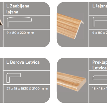 Debljina okvira je standardno 36 mm, a standard za pervaz je 10 cm širine, 12 mm debljine, s „ušnim“ nastavkom (produžetkom) dužine 30 mm.